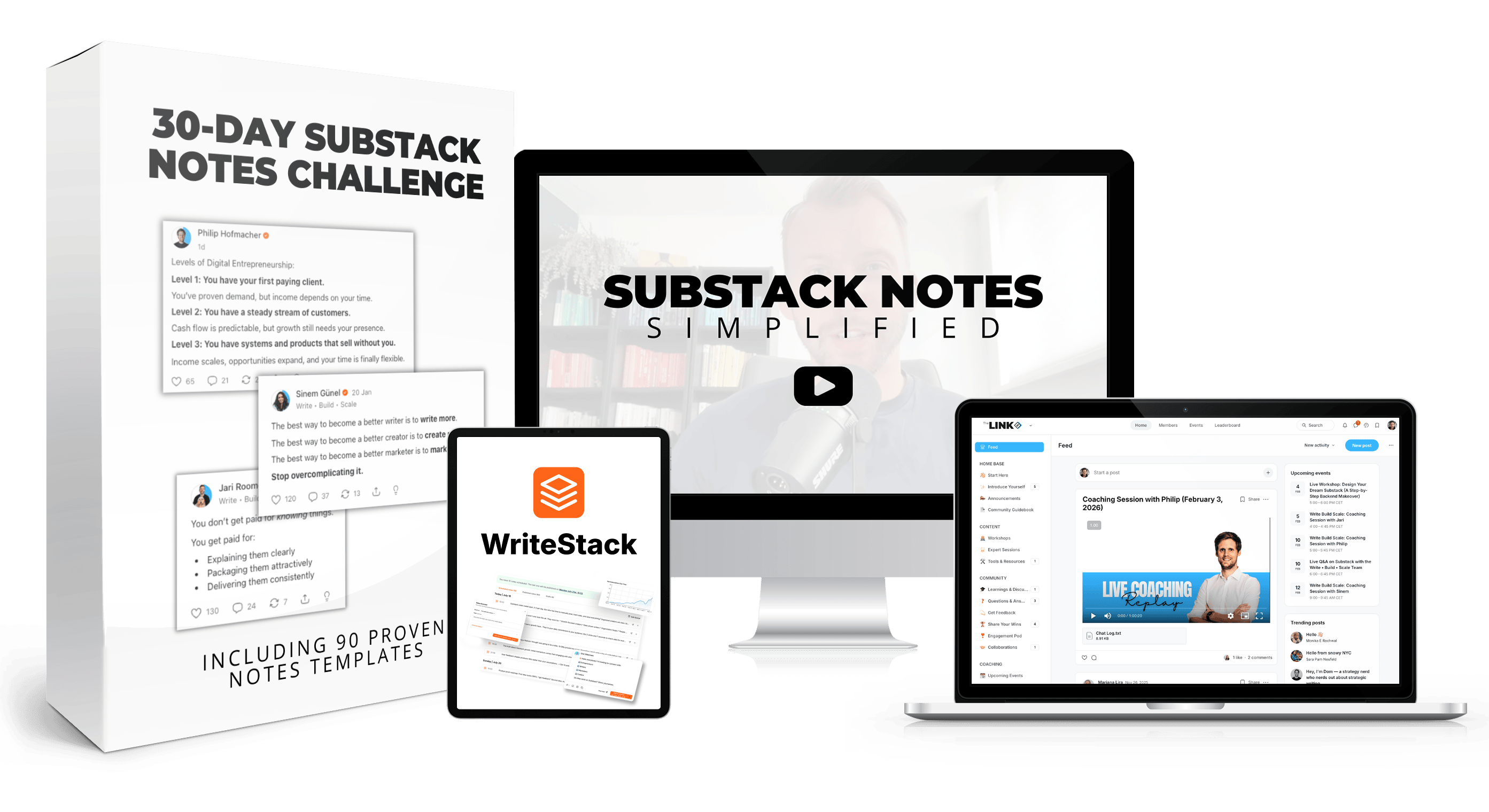 Substack Notes Simplified is created by Sinem Günel, Philip Hofmacher, and Jari Roomer — three Substack bestsellers and the team behind Write • Build • Scale, a publication with 40,000+ subscribers and 1,250+ paying members.