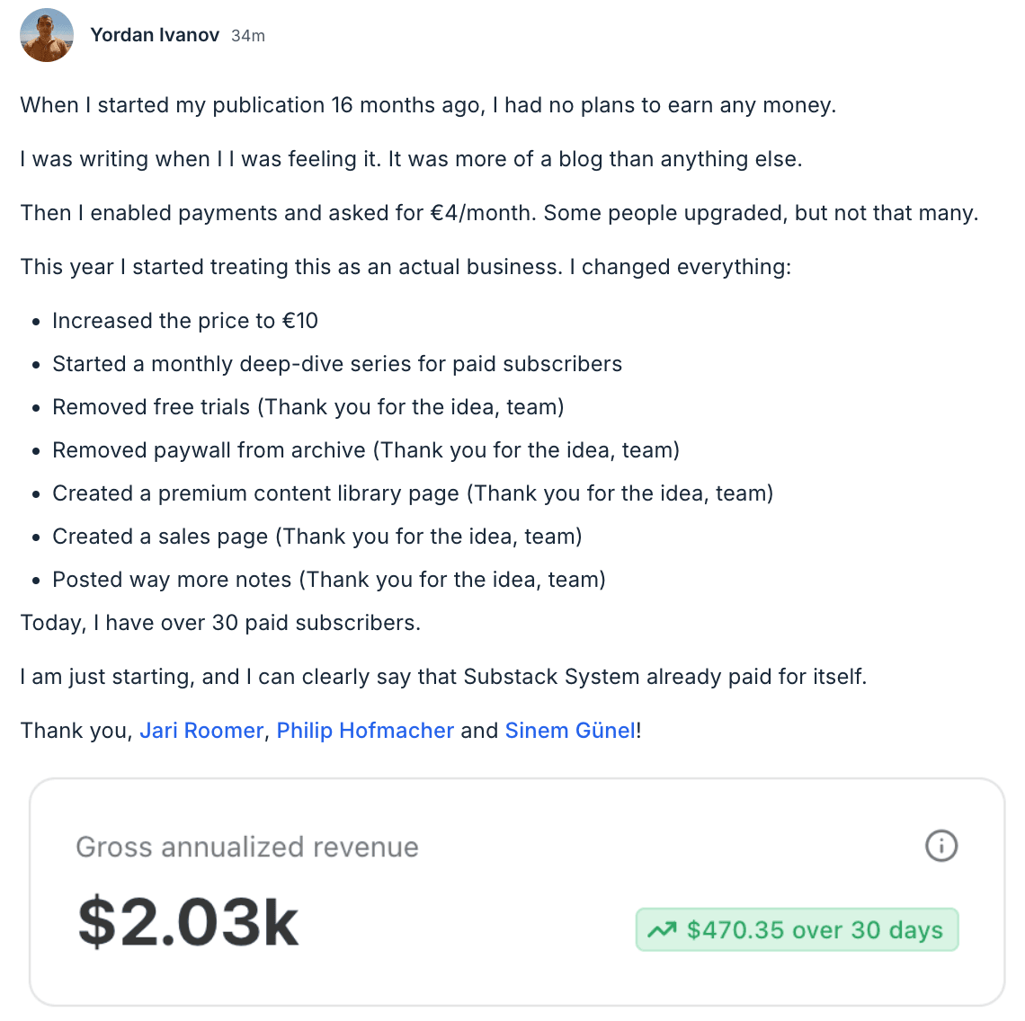 Sinem Günel, Jari Roomer, and Philip Hofmacher created Substack System by combining their 20+ years of experience in the online business space. Together, they've reached millions of readers, served thousands of clients, and turned their Substack publication Write • Build • Scale into a Bestseller in less than 60 days.